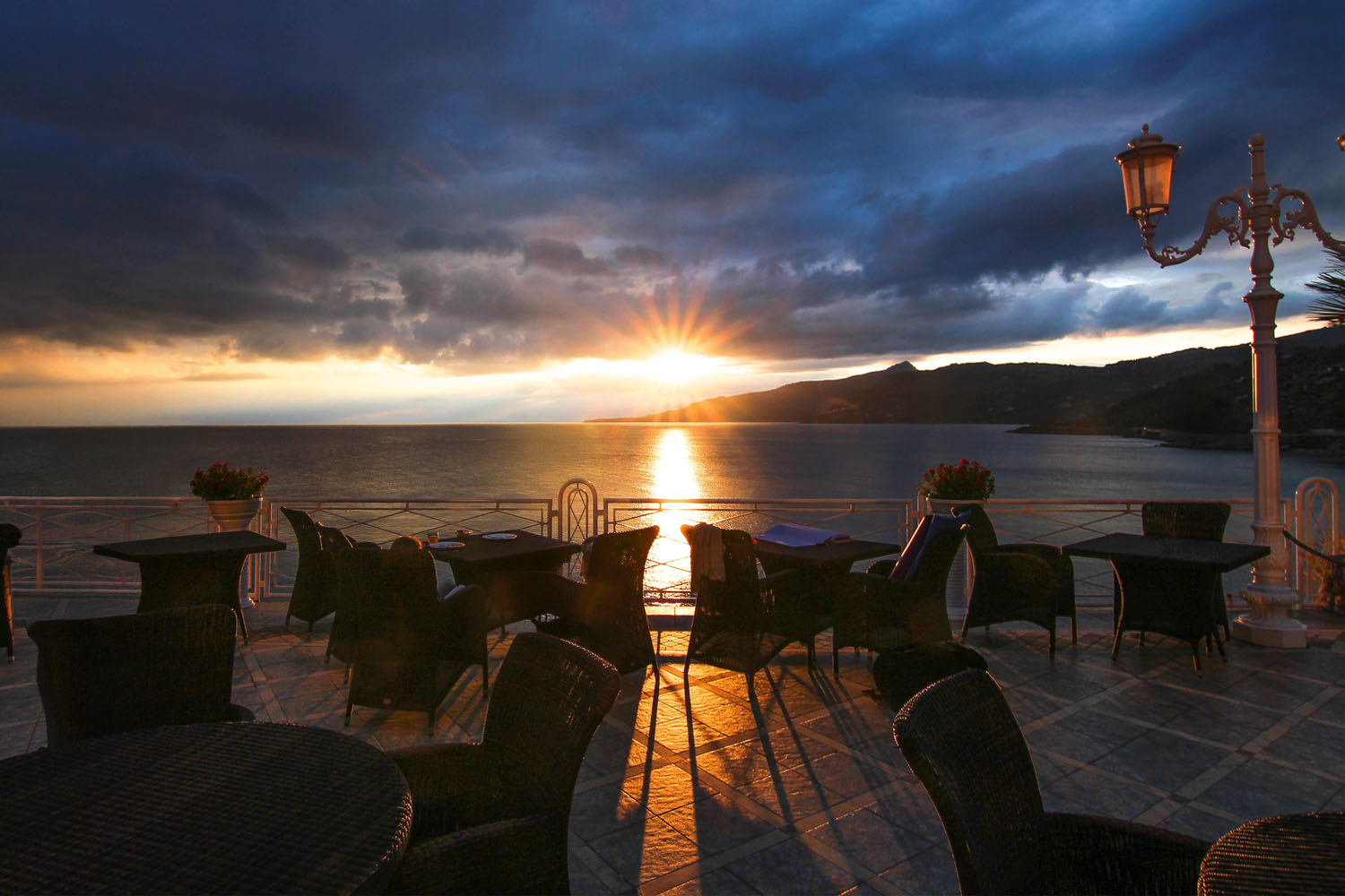 Die Superior-Doppelzimmer mit Meerblick sind in verschiedenen Blautönen designed, so dass du die Atmosphäre hinter den Fenstertüren genießen kannst: eine Terrasse, auf der du einen Cocktail vor dem Ausblick der wunderschönen Bucht der Caldura genießen kannst.