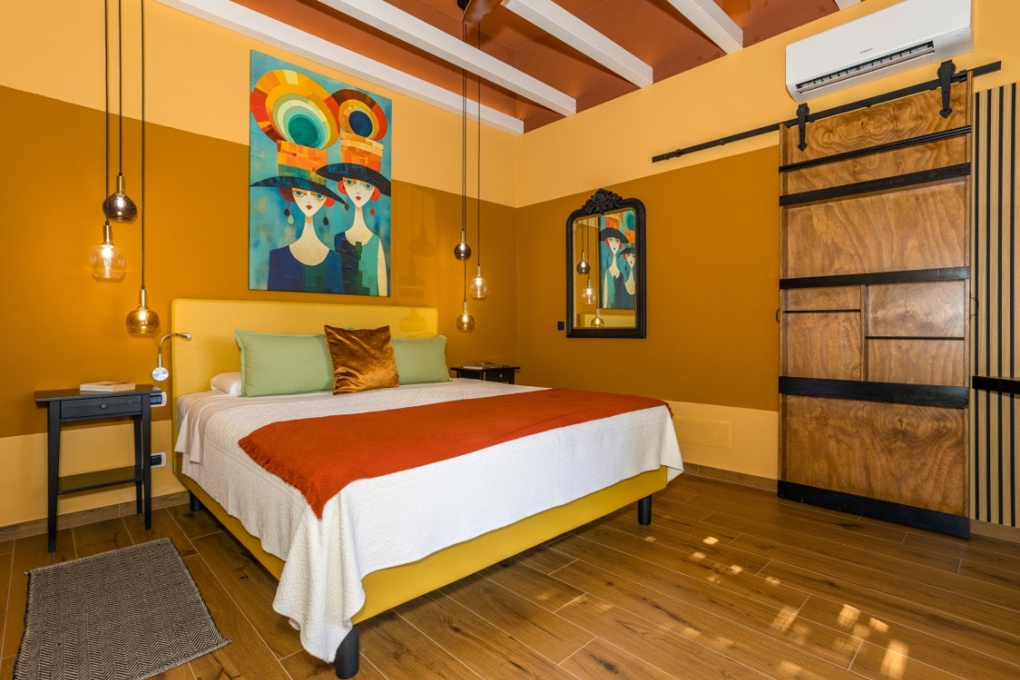 Ogni camera matrimoniale è decorata con uno stile unico, per entrare in risonanza anche col tuo gusto personale.